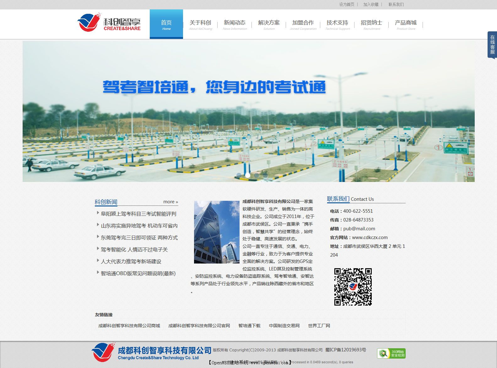 成都科創智享科技有限公司是一家集軟硬件研發、生產、銷售為一體的高科技企業。公司成立于2011年,位于成都市武侯區。公司一直秉承“攜手創造,智慧共享”的經營理念,始終處于穩健、高速發展的狀態。 公司一直專注于通信、交通、電力、金融等行業,致力于為客戶提供專業全面的解決方案。公司研發的GPS定位監控系統、LED屏及控制管理系統、安防監控系統、電力設備防盜追蹤系統、駕考智培通、安智達等系列產品處于行業領先水平,產品銷往除西藏外的省市和地區。